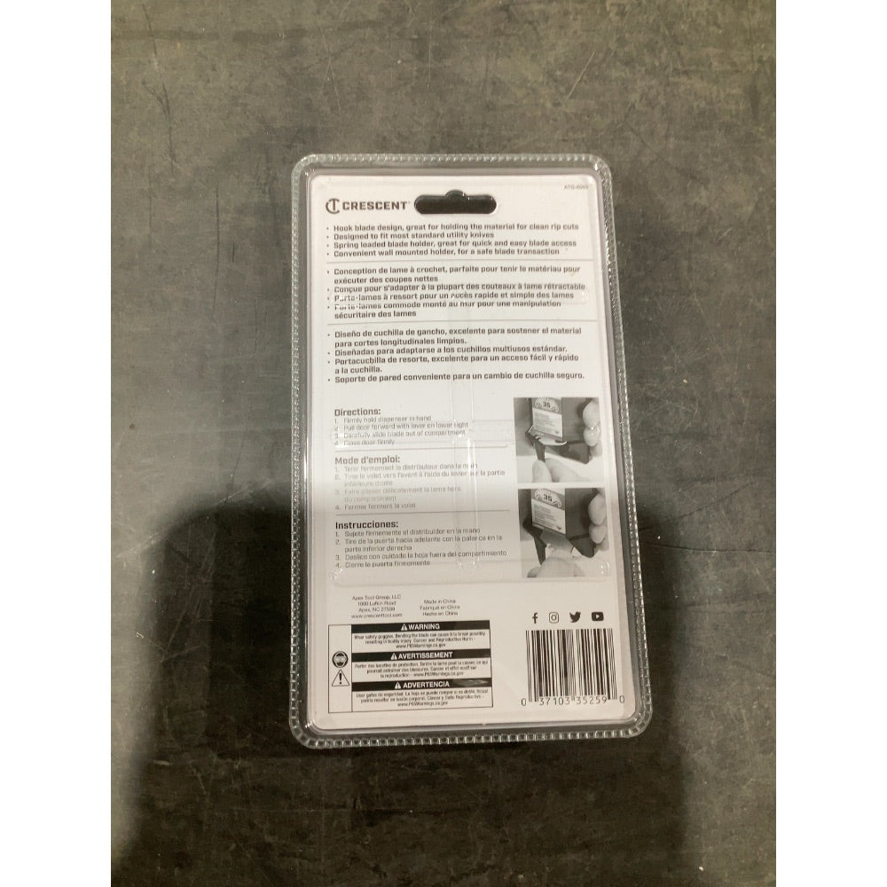 Crescent 35 piece hook utility blade pack in wall mount dispensable holder. Hook blade design great for holding the material for clean rip cuts Designed to fit most standard utility knives Spring loaded blade holder great for quick and easy blade access Convenient wall mounted holder for a safe blade transaction.