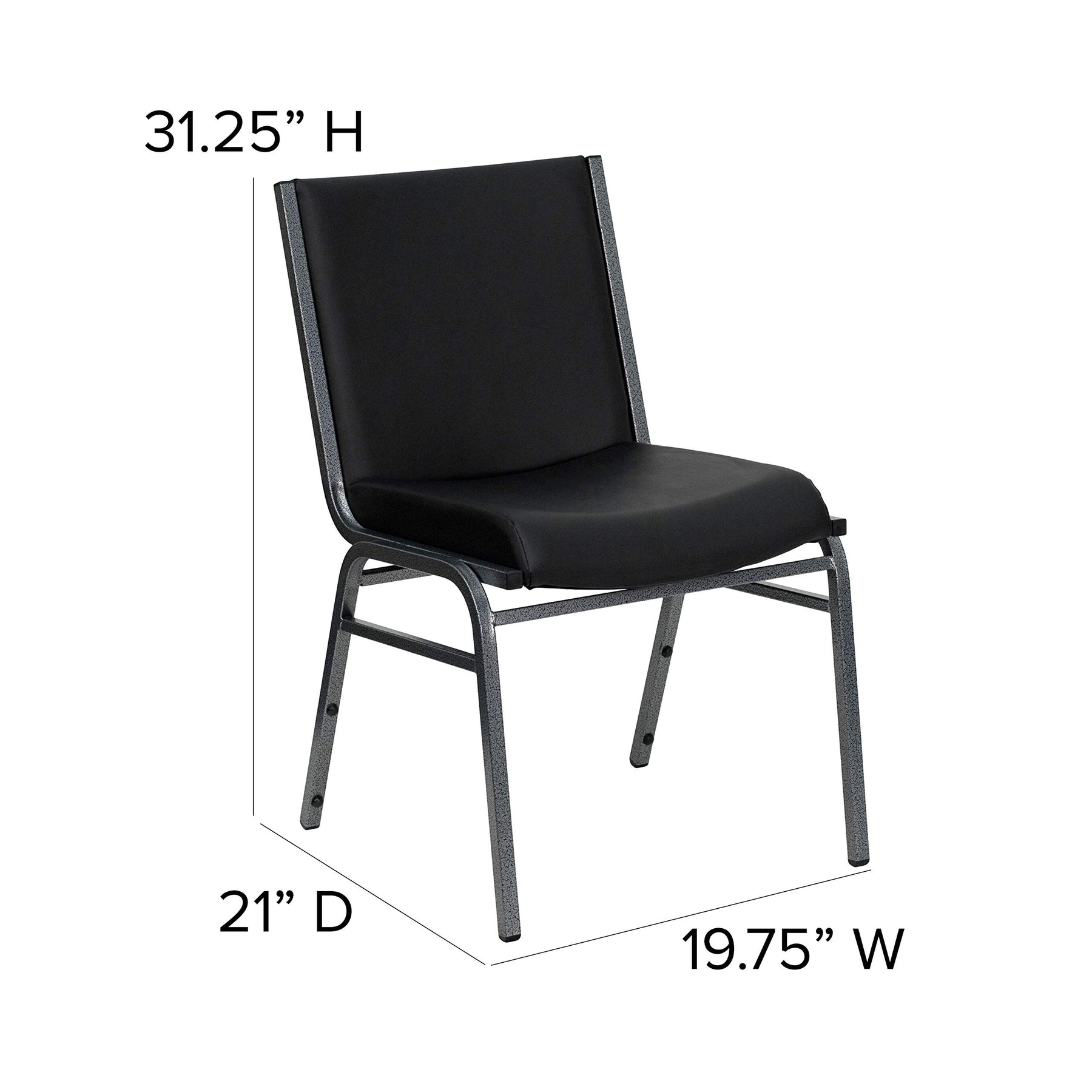 HEAVY-DUTY STACKING CHAIR: Offers a comfortable and reliable seating solution that creates a welcoming atmosphere in lobbies, offices, professional cafeterias, training rooms, libraries, or business centers COMFORTABLE AND DURABLE: Contoured seat cushion provides optimal comfort for your guests or clients, and the sturdy 18-gauge steel frame with a powder-coated finish holds up to 550 lbs. of static weight GANGING BRACKET: You can easily create a uniform row seating with multiple stacking chairs in your lobby or venue thanks to the conveniently included ganging bracket HIGH-QUALITY CONSTRUCTION: Heavy-duty frame features bumper guards that prevent the finish on the frame from being scratched when stacked, and the frame also has plastic glides that protect flooring surfaces when moving the chairs STACKABLE DESIGN: Measures 19.75"W x 21"D x 31.25"H and stack up to 12 high for compact storage in between uses, making them ideal as a spare seating option