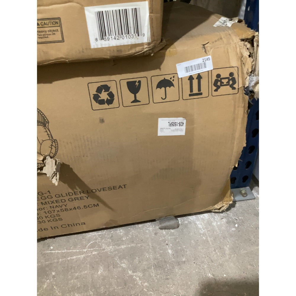 The Egg Glider Loveseat is designed to provide a cozy and inviting seating experience. Its unique egg shape and smooth gliding motion make it a standout piece, ideal for relaxing with a friend or loved one. The neutral mixed grey wicker and navy cushions ensure it complements various decor styles.