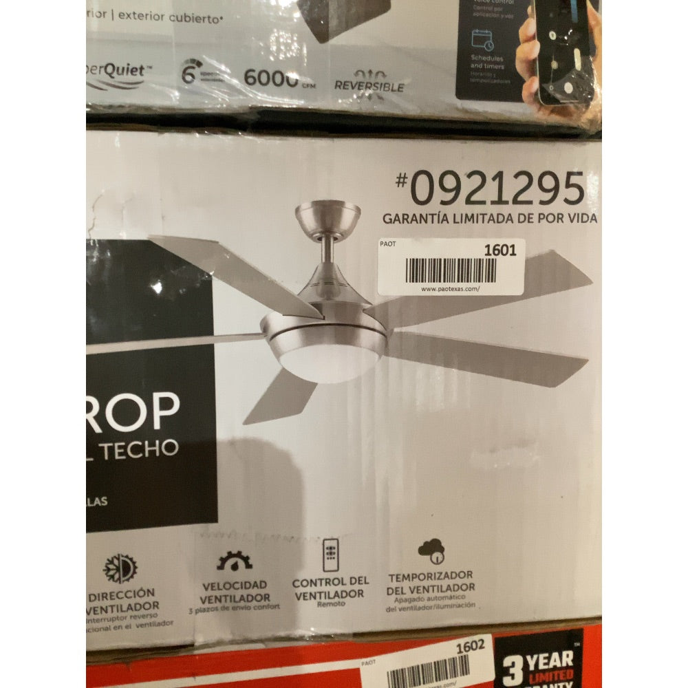 This Fanimation Aire Drop ceiling fan offers both style and functionality, perfect for any modern home. Its sleek design and integrated features provide comfort and convenience.