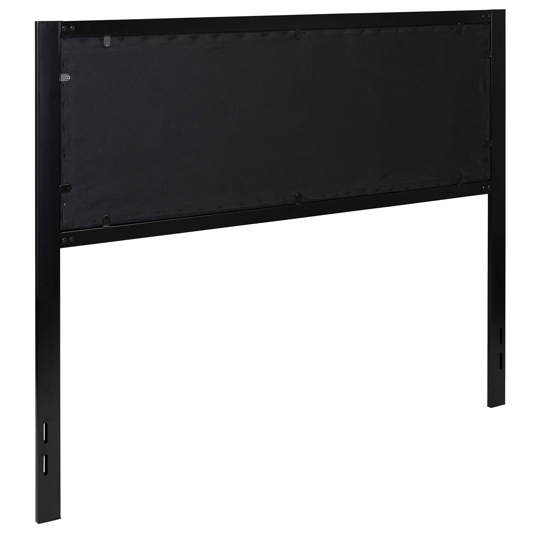 Enhance your bedroom decor with this beautiful tufted upholstered headboard to support relaxation in a classic modern design. Bedrooms have an open appearance when using a panel headboard and are ideal for taller framed people. Space-efficient adjustable headboard is perfect for small bedrooms making them appear larger Polyester fabric upholstered headboard with metal surround, black metal frame with adjustable bed rail slots Purchase our Capri mattress in a box for a great night's rest PRODUCT MEASUREMENTS: Overall Size: 60"W x 2"D x 47"H; Headboard Size: 55"W x 2"D x 18.75"H