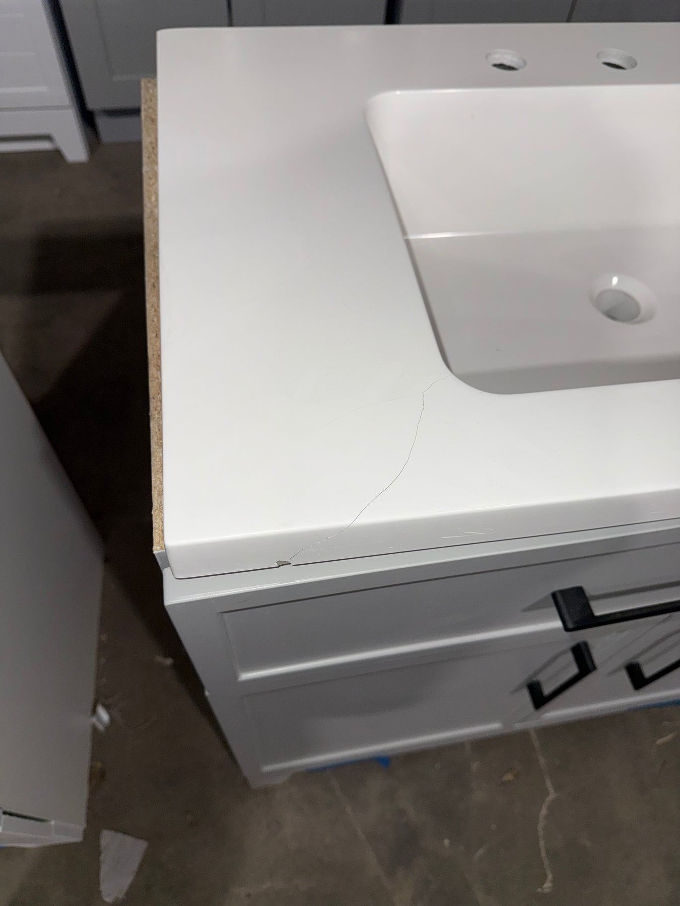 Product: Style Selections Potter 36-in Light Gray Single Sink Bathroom Vanity with White Cultured Marble Top (Damaged)