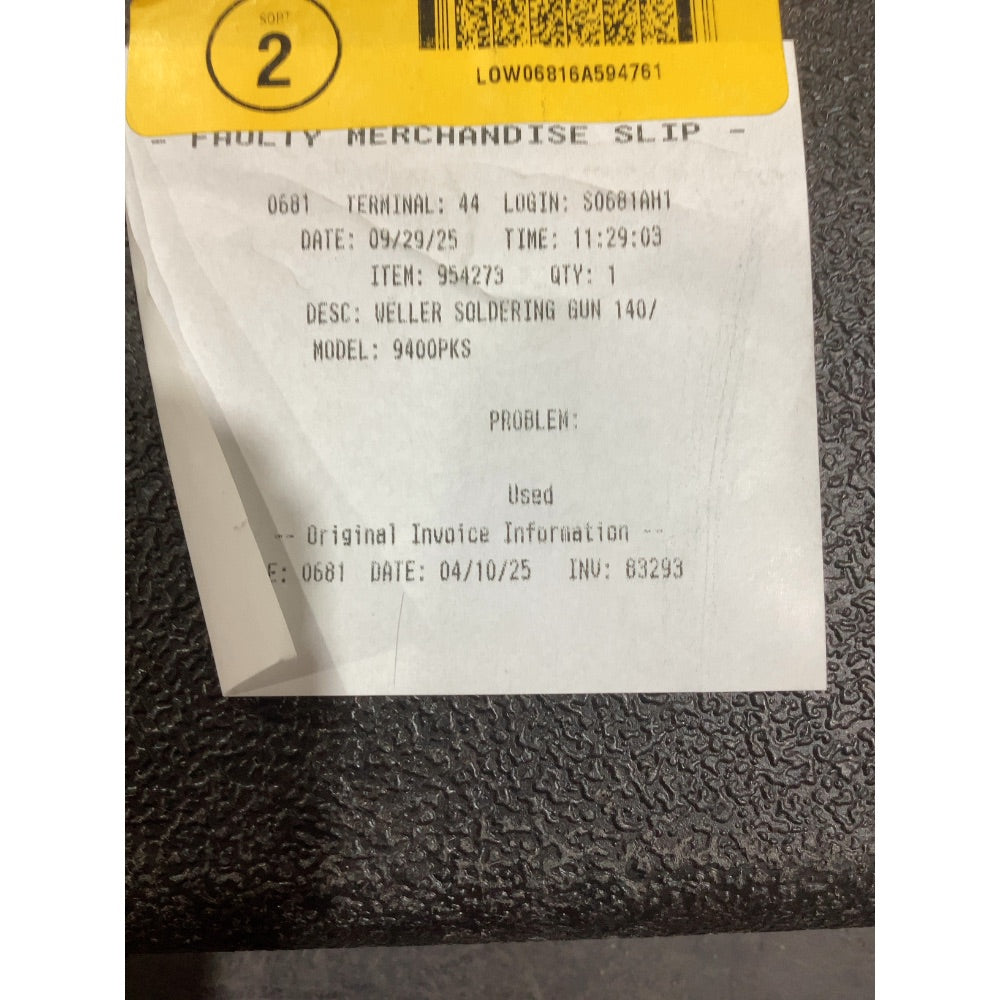 This is a Weller Soldering Gun 140/9400PKS, a durable and reliable tool for various soldering applications. This soldering gun is designed for heavy-duty use and provides efficient and precise soldering. This item is in used condition.