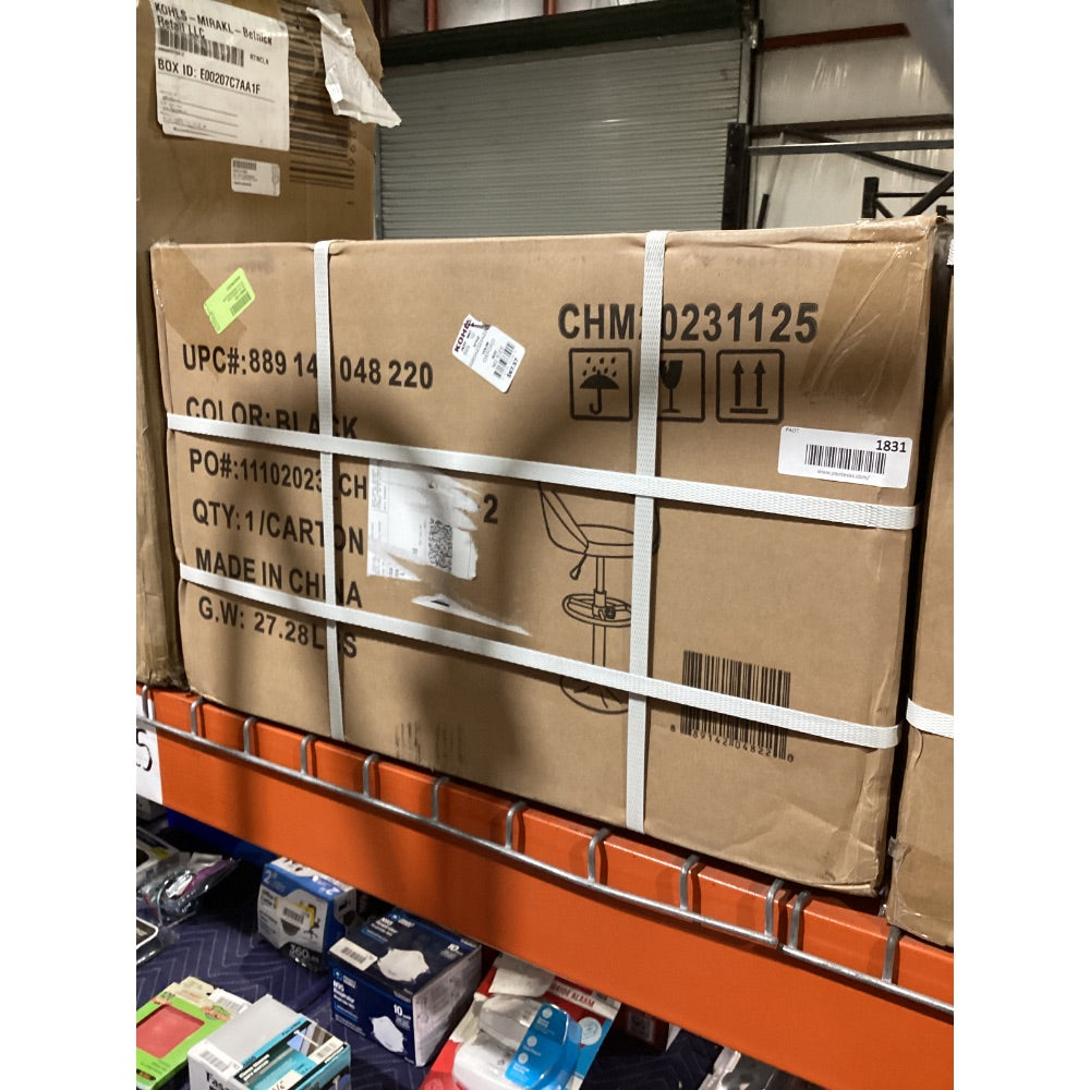 If your existing counter or bar area needs some TLC help has arrived. This comfortable adjustable height stool looks so good people won't be able resist staying a while and the embedded plastic ring will keep your floors safe from damage. Rounded low back design with padded, vinyl upholstered seat and back 360° swivel seat with CAL 117 fire retardant foam, chrome base with height adjustable foot ring Contemporary style fits nicely in your kitchen, dining room or living space PRODUCT MEASUREMENTS: Overall Size: 21"W x 18.5"D x 32.5-41"H; Seat Size: 15"W x 14.5"D x 23.25-32"H; Back Size: 12"W x 9"H; Arm Size: 30-39"H from floor; 7"H from seat