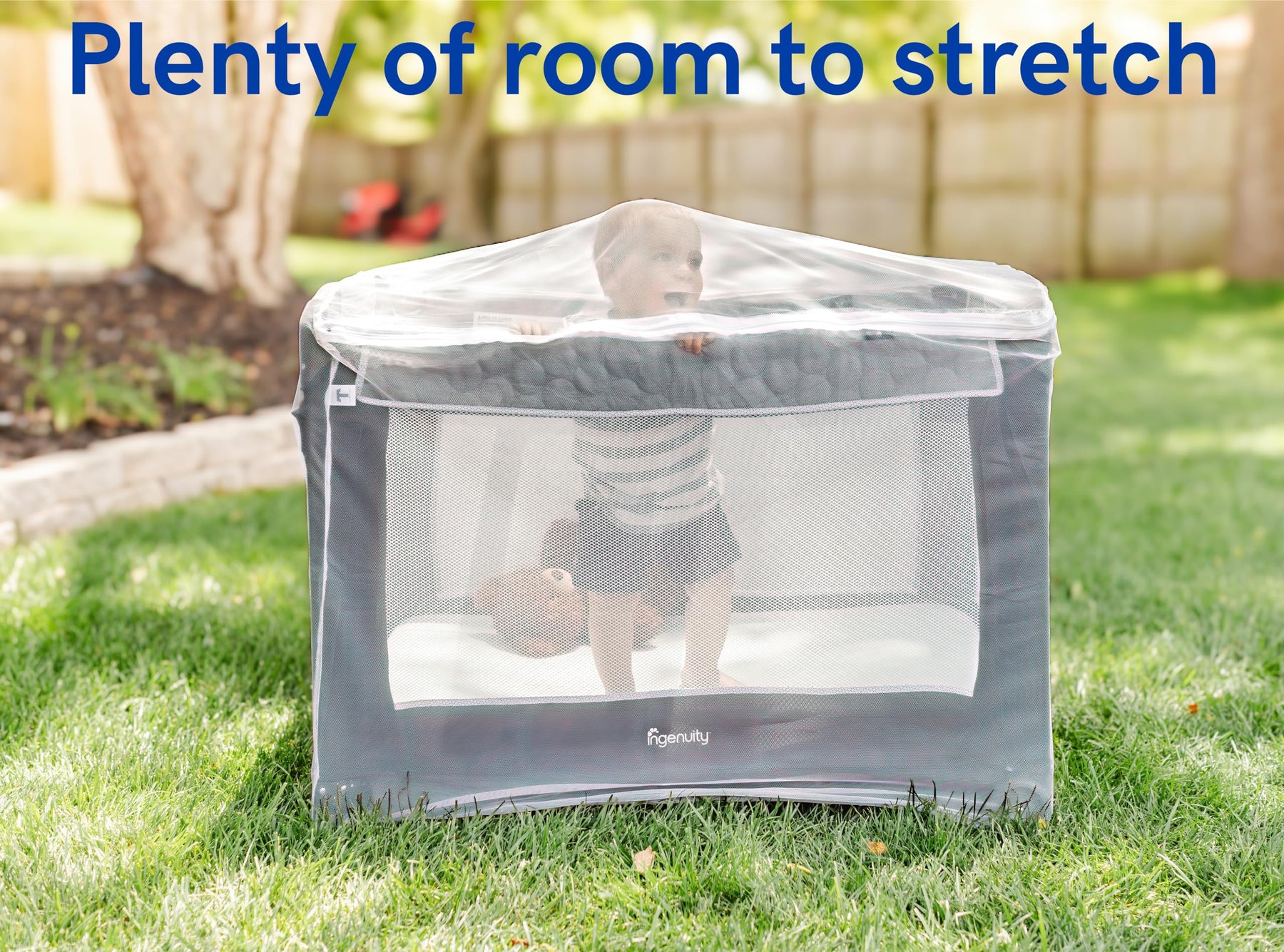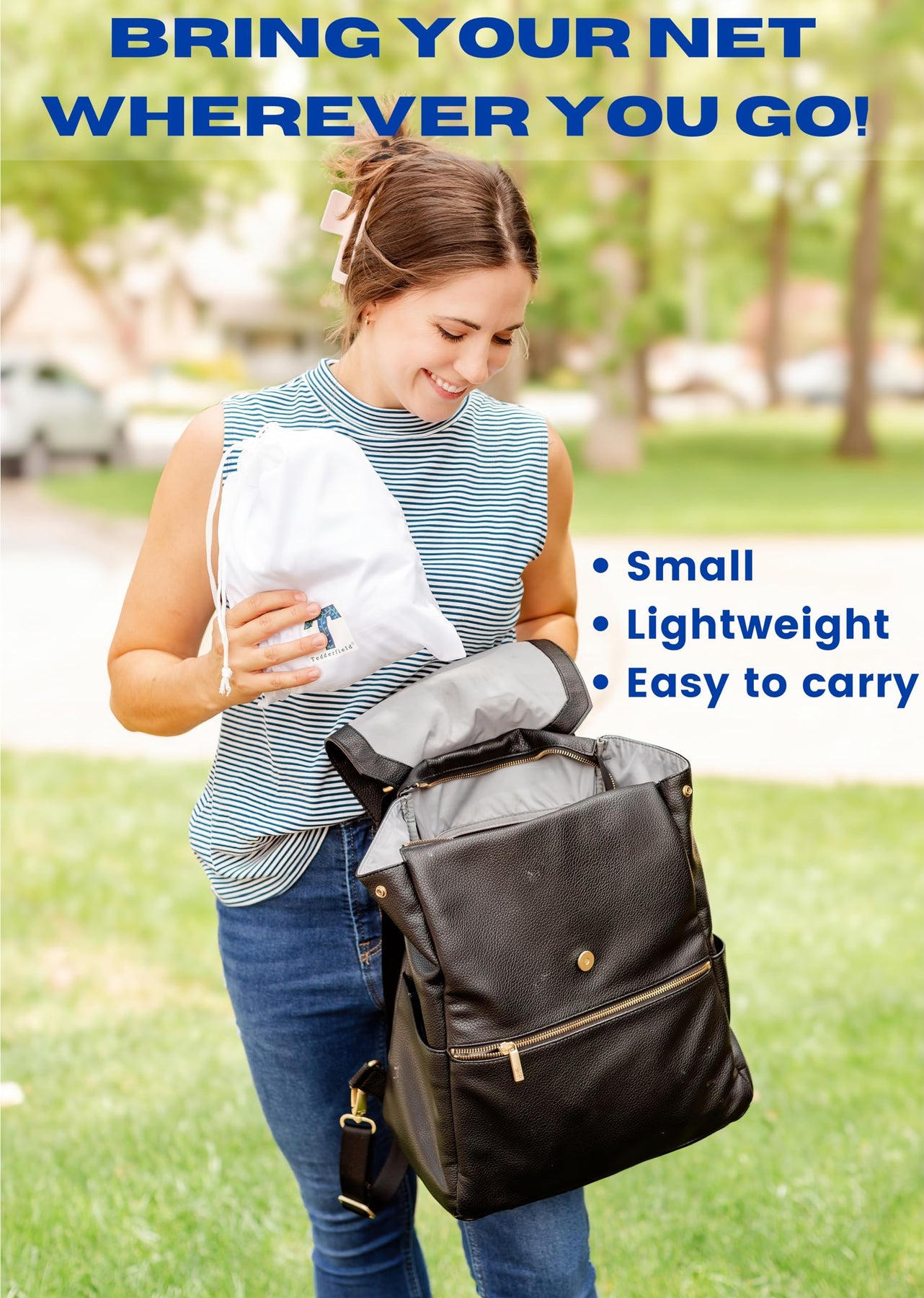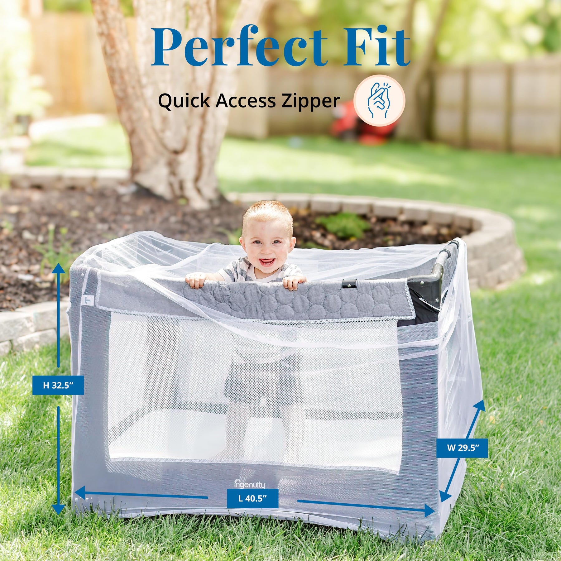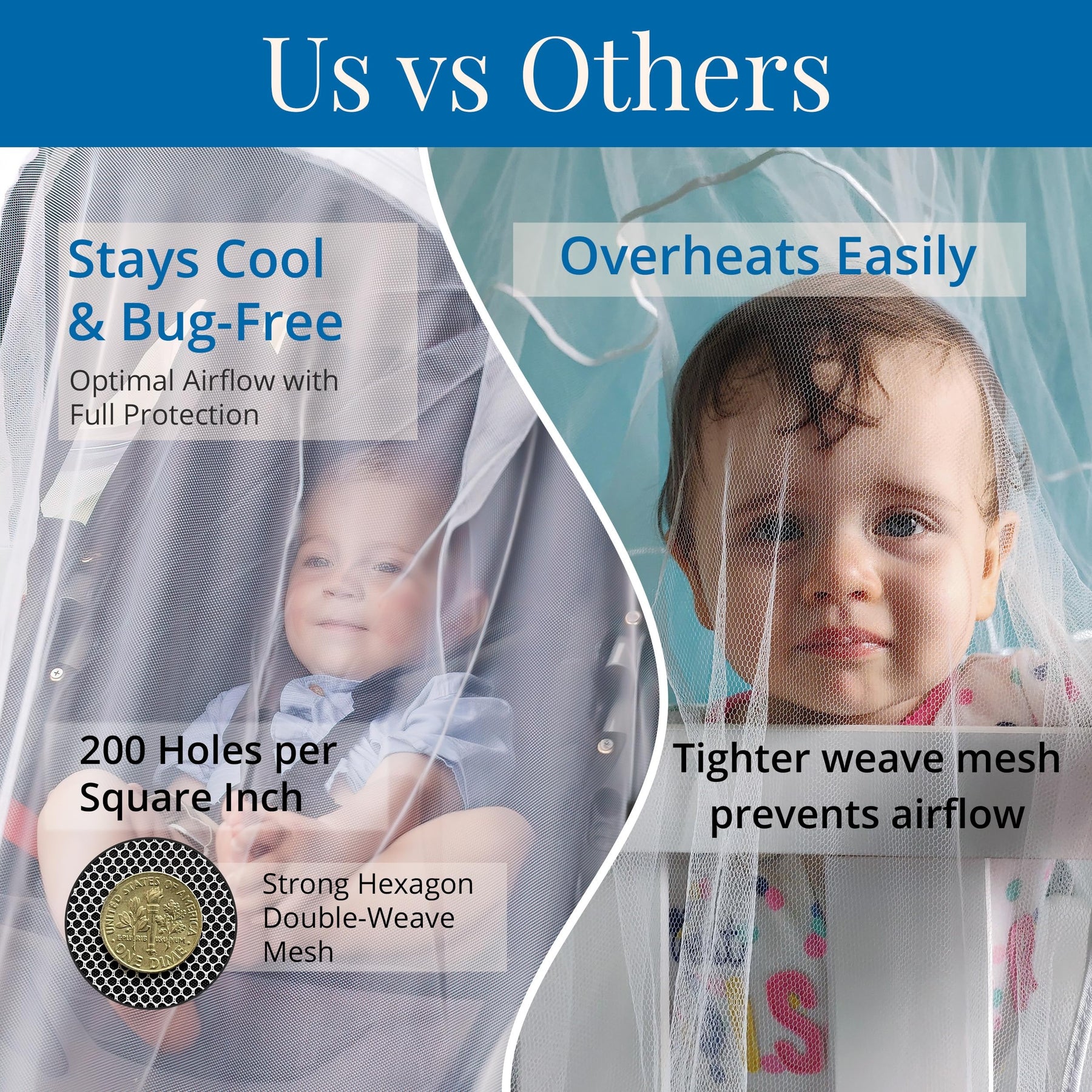 2-WAY ZIPPERS ALLOW FOR FAST ACCESS – Use the high-quality zippers to quickly reach your baby. No more fighting with the elastic you’ll find on cheaper baby mosquito nets to tend to your child! ADAPTABLE TO FIT MOST BABY GEAR – With the drawstring base, this net is a stroller mosquito net cover, a pack and play mosquito net cover, a bassinet mosquito net cover, etc. Cover a standard size playpen or playard, jogging, double or regular stroller, bassinet, baby backpack carrier, bouncer, rocker chair, portable travel crib, etc. DIMENSIONS: L40.5” x W29.5” x H32.5”. (Please note: Playpen NOT included). PREMIUM QUALITY AND SUPERIOR AIRFLOW – The double-weave hexagonal mesh is twice as strong and more durable than that found on cheaper brands. The mesh size allows for excellent air flow while keeping bugs away to keep your child comfortable and bite-free. Chemical free. LIGHTWEIGHT, EASY TO CARRY AND USE – Cover your baby gear, pull the base drawstring tight, and use the zippers for access. This mosquito net for pack and play, strollers and other essential baby gear is sturdy, lightweight, easy to take with you anywhere you go. MACHINE WASHABLE – place the mosquito netting in a mesh laundry bag, wash in cold water, delicate cycle and line dry. INCLUDES a cloth carry bag and whimsical teddy bear zipper pulls. PERFECT BABY SHOWER GIFT!