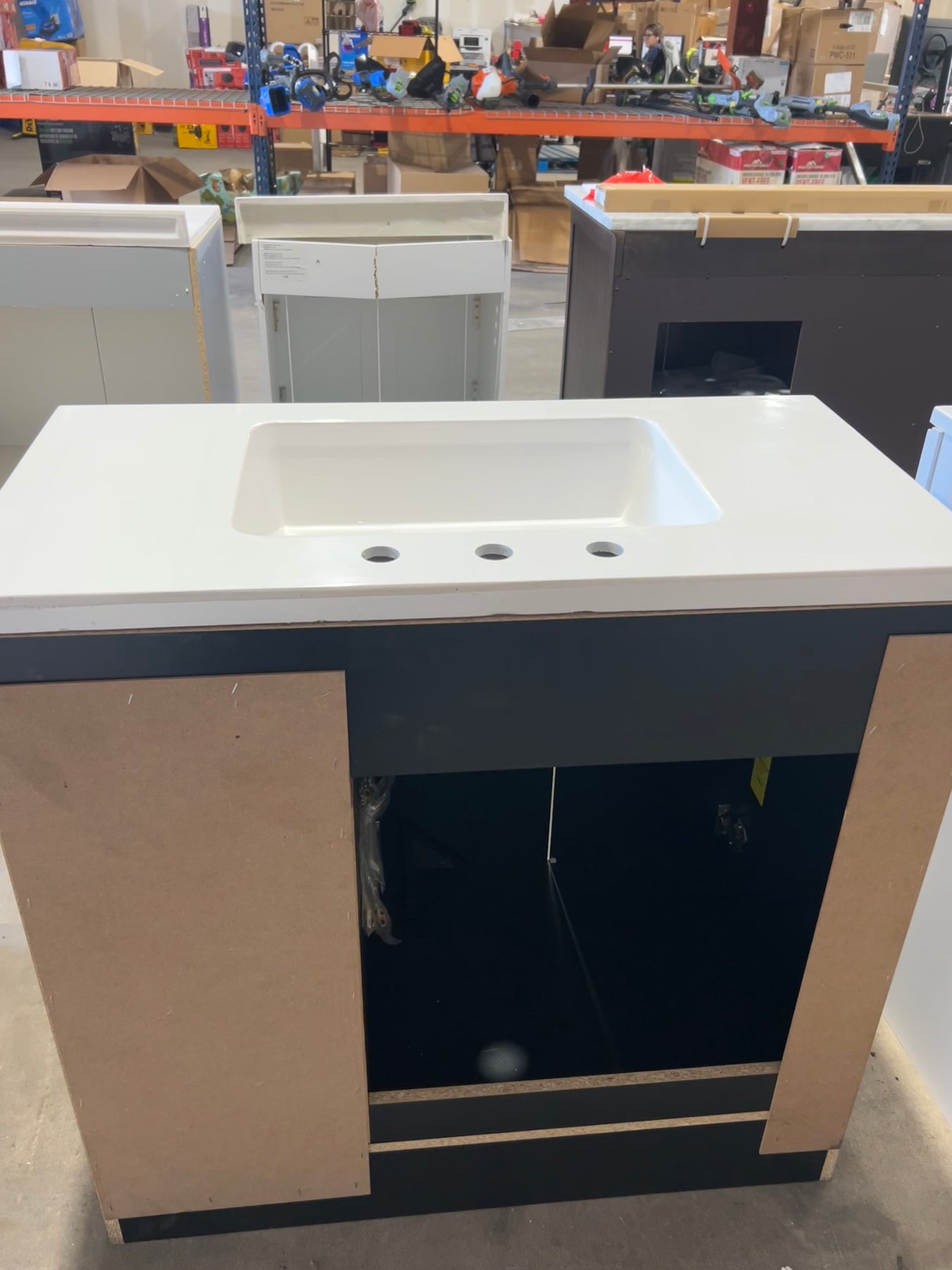 El gabinete de madera dura de ingeniería preensamblado con parte posterior abierta y tapa de fregadero separada ofrece una fácil instalación tanto para aficionados como para contratistas.