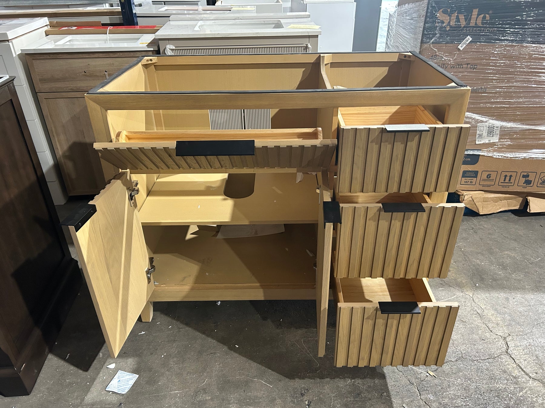 Product: Origin 21 Tindall 42-in Natural Undermount Single Sink Bathroom Vanity (No Top) (Top Drawer is DAMAGED)