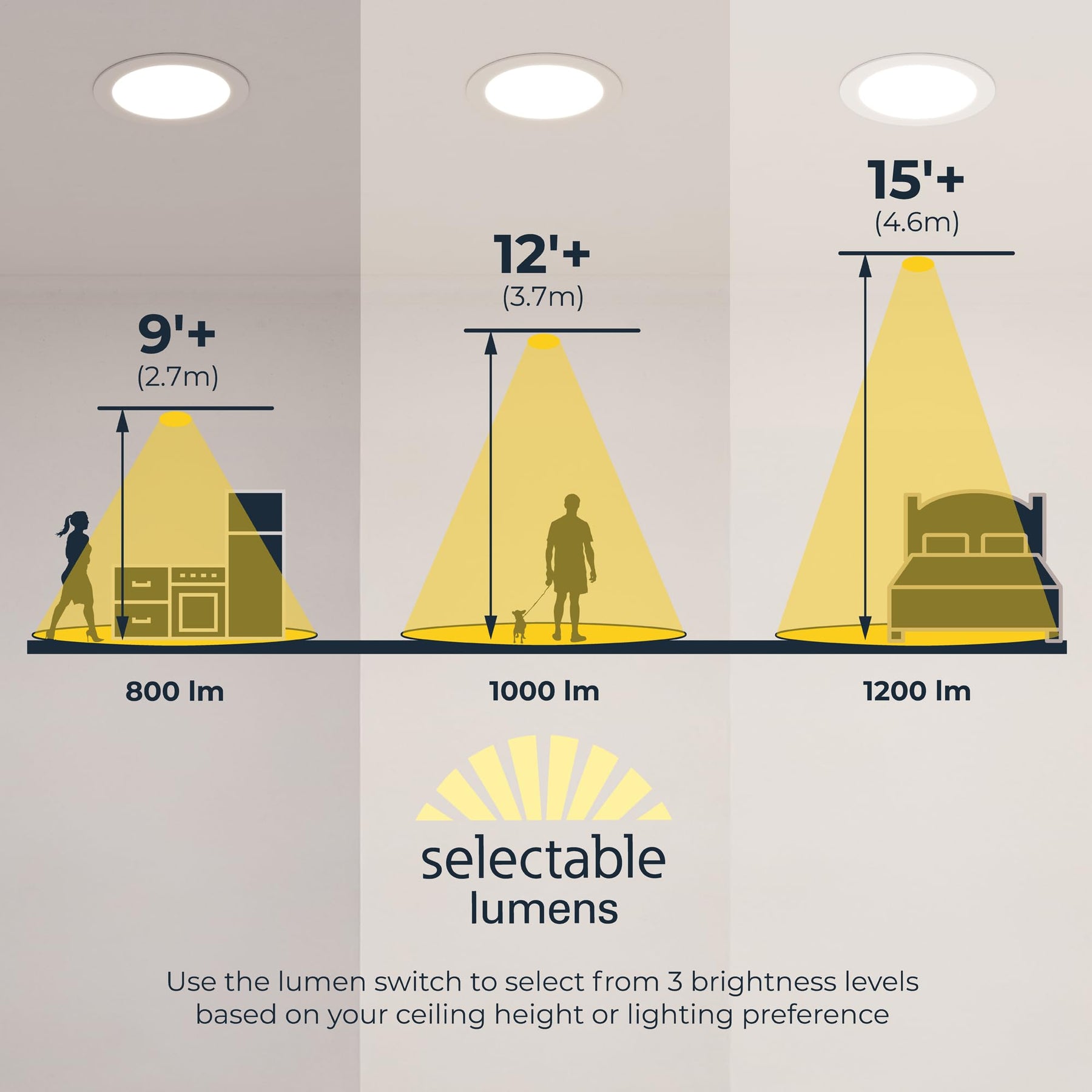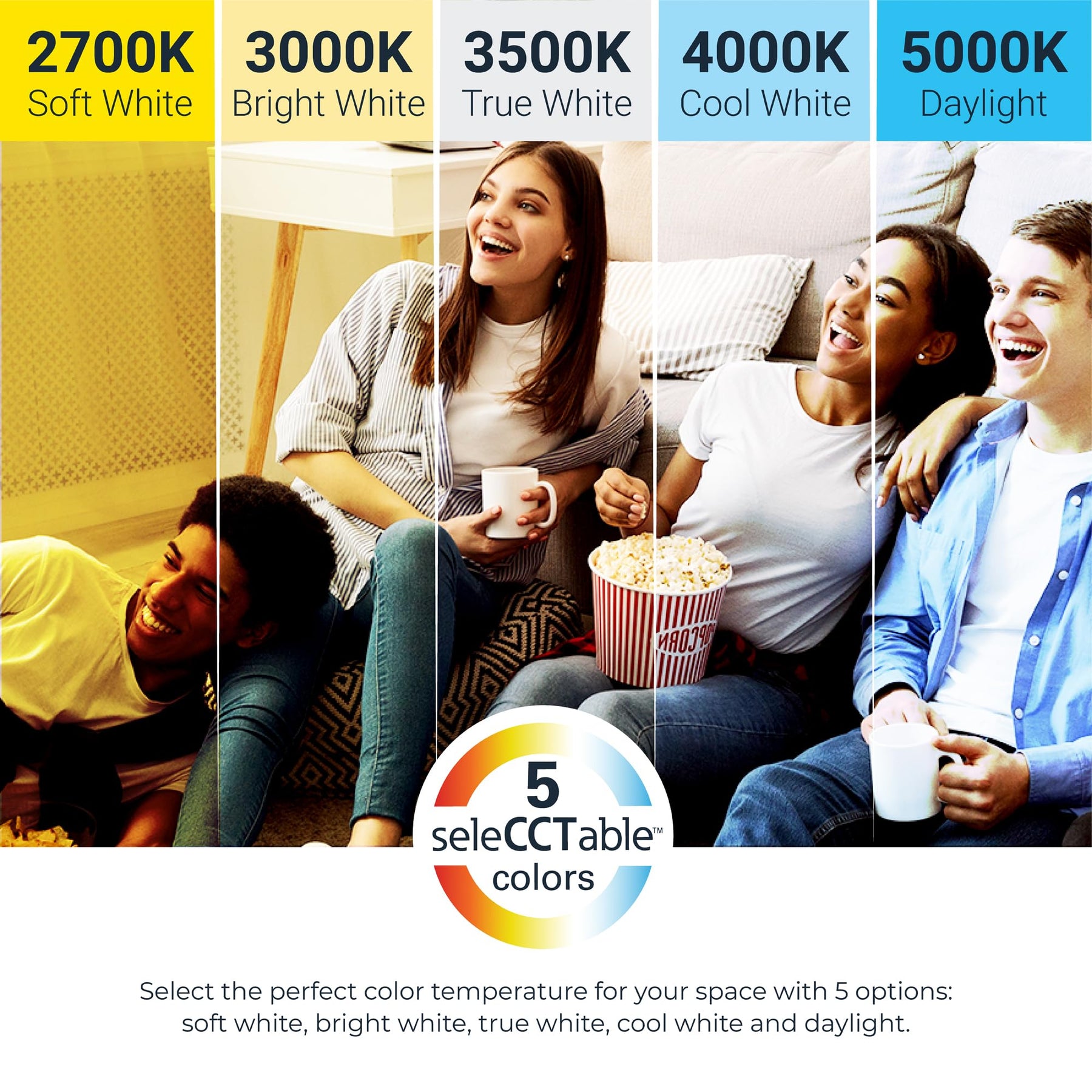 INDOOR/OUTDOOR ELEGANCE: Wet Location-listed for soffits, walkways, and inside areas like showers, bathrooms, and more. Matte white finish with textured lens for smooth light distribution ULTRA SLIM AND AIRTIGHT: Fixture is less than 1/2" thick and mounts directly to the ceiling, avoiding obstacles like joists and ducting, with an airtight fit; ENERGY STAR certified and IC (insulation contact) rated CUSTOMIZABLE: Select your color temperature with a 5-position switch, from warm white (2700K) to daylight (5000K), and choose from 3 brightness levels. Add a compatible dimmer for flicker-free dimming to 5%. Additional trims are also available EASY INSTALLATION: No housing or junction box required! The included junction box is repositionable, and spring clips firmly secure the fixture to the ceiling ESTABLISHED, REPUTABLE BRAND: HALO products are engineered and tested in the U.S.A. and have been a contractor-preferred brand for over 65 years. We offer superior quality, U.S.-based customer service, and a 5-year product warranty