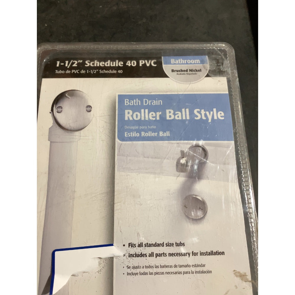 Home & Garden; 1124; The Keeney Roller Ball Stop Style Drain is a complete bath drain that includes Schedule 40 PVC piping and tarnish-free brushed nickel exposed trim. Fits all standard size tubs and includes all nuts and washers necessary for installation. Keeney is a.; 1; 63.63