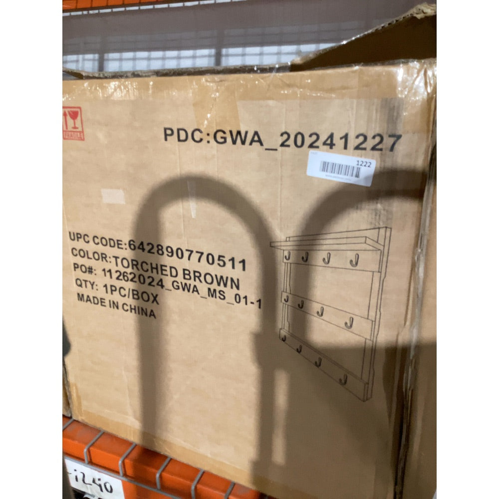 This beautifully handcrafted rustic mug organizer will save you space and look great! The classic brown color looks great in modern or rustic style kitchens. The convenient shelf is perfect for displaying your coffee items!