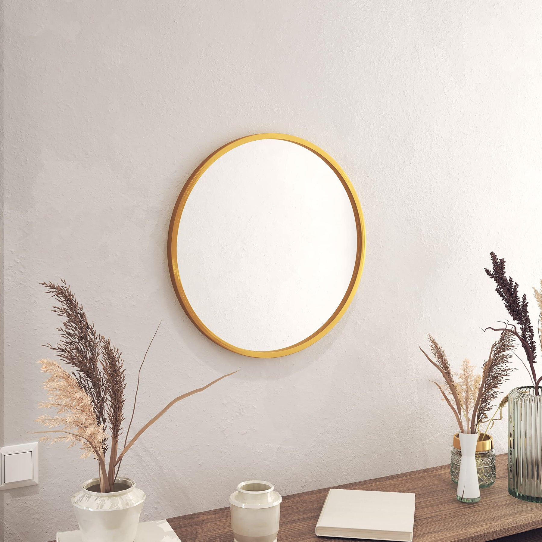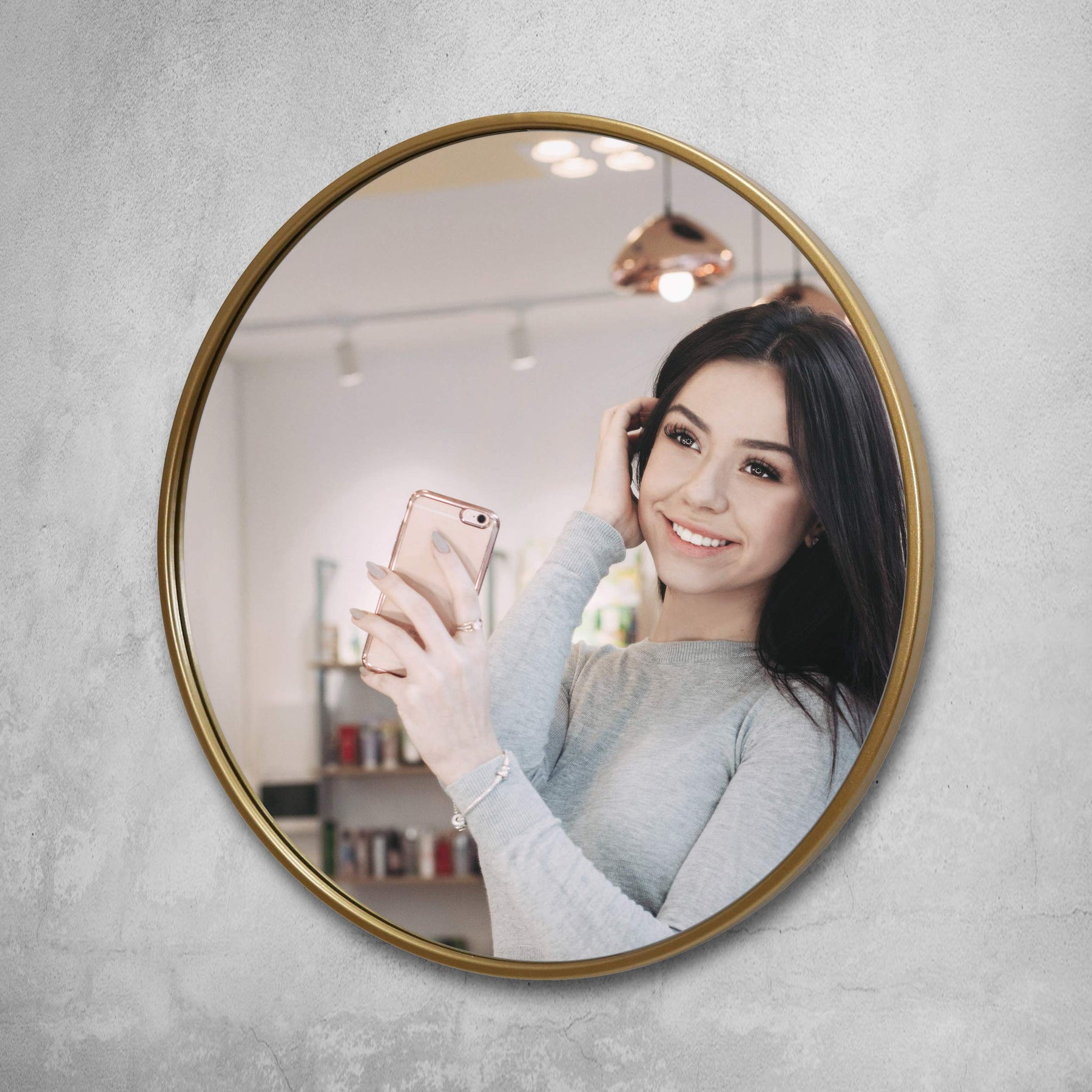 Our stunning gold mirror is a wall hanging mirror, and is handcrafted with care and attention to both detail and design. High quality metals and mirror materials are used to guarantee the sturdiness and consistent aesthetic beauty of the design. Our mirrors are silver-backed, presenting a beautiful reflection every time. The classy gold finish really stands out making any wall look incredible! This 20 inch mirror is the ideal size for a bathroom or an entryway. The gold circle mirror frame accents any room perfectly and matches any decor. Use as a classy gold bathroom mirror, gold vanity mirror, or entry mirror. Add light and to enhance the beauty of any room in your home instantly! We use the highest quality mirror materials on the market. We use thicker glass and real silver backing (not cheap substitutes) to ensure you are getting a great mirror for your home. We chose metal as the frame material for its timeless and adaptable look. The frame is handmade with care and attention, adding a genuine and warm feel to beautify your home. We have included 3 options of anchors to choose from to best fit your wall. The keyhole back hanger hanging hardware was chosen to ensure safe hanging. Please ensure to hang properly for safety.