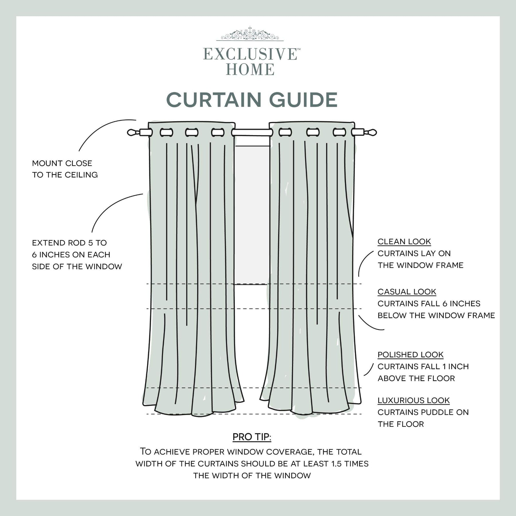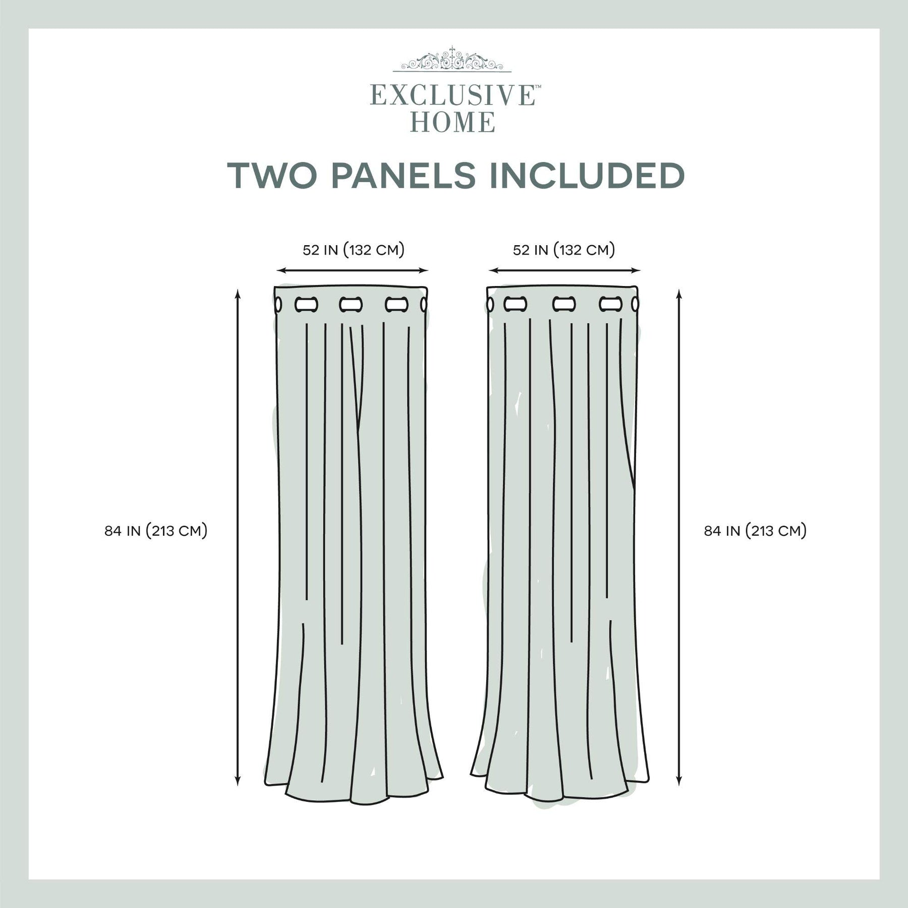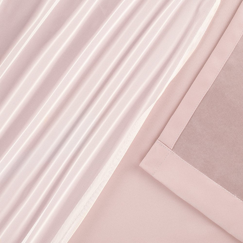 Catarina drapes offer both the function of a sateen woven blackout Curtain paired with the fashion of a Sewn in White sheer panel for layered sophistication Set includes: two (2) curtain panels, each measuring 52"W x 84"L 8 matte silver grommets per panel; inside diameter for curtain rod measures 1-5/8"; each panel Sewn with 4" Top hem, and 3" Bottom hem Recommend ordering 2 to 3 times rod width for proper look and fullness Care instructions: spot clean and/or Hand wash window treatment curtains. Use iron on low heat to straighten and remove creases/wrinkles from packaging.