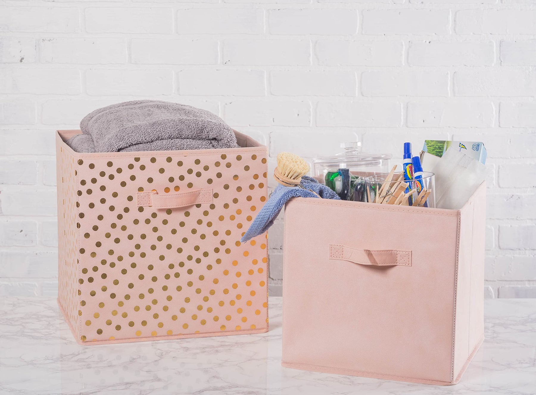 Fits into cube organizer - storage bin measures 11x11x11, the perfect Size for most cube organizers Sturdy construction - non-woven fabric storage bins have Cardboard sides and a removable bottom to give shape and add structure while Still allowing bins to Fold flat when not in use Always trendy & stylish - these bins are available in fun, trendy and adorable styles and colors, a perfect addition to a nursery, home office, craft room, or use as a laundry Hamper Organizational solution for the home - find a place for Knick knacks, Children's' toys, magazines, craft supplies, and more with these sturdy, everyday bins that can be tucked MORE STORAGE OPTIONS - To view more of our storage products including under the bed storage, metal bins, burlap bins