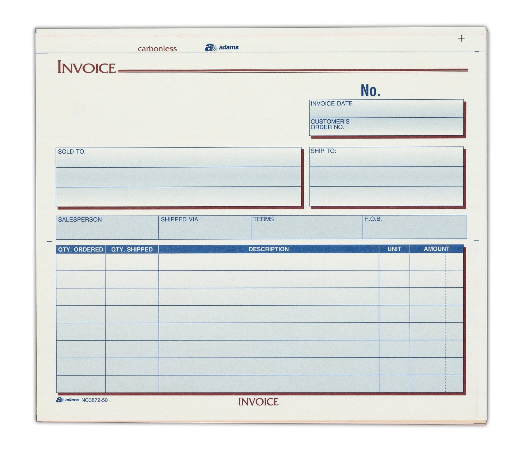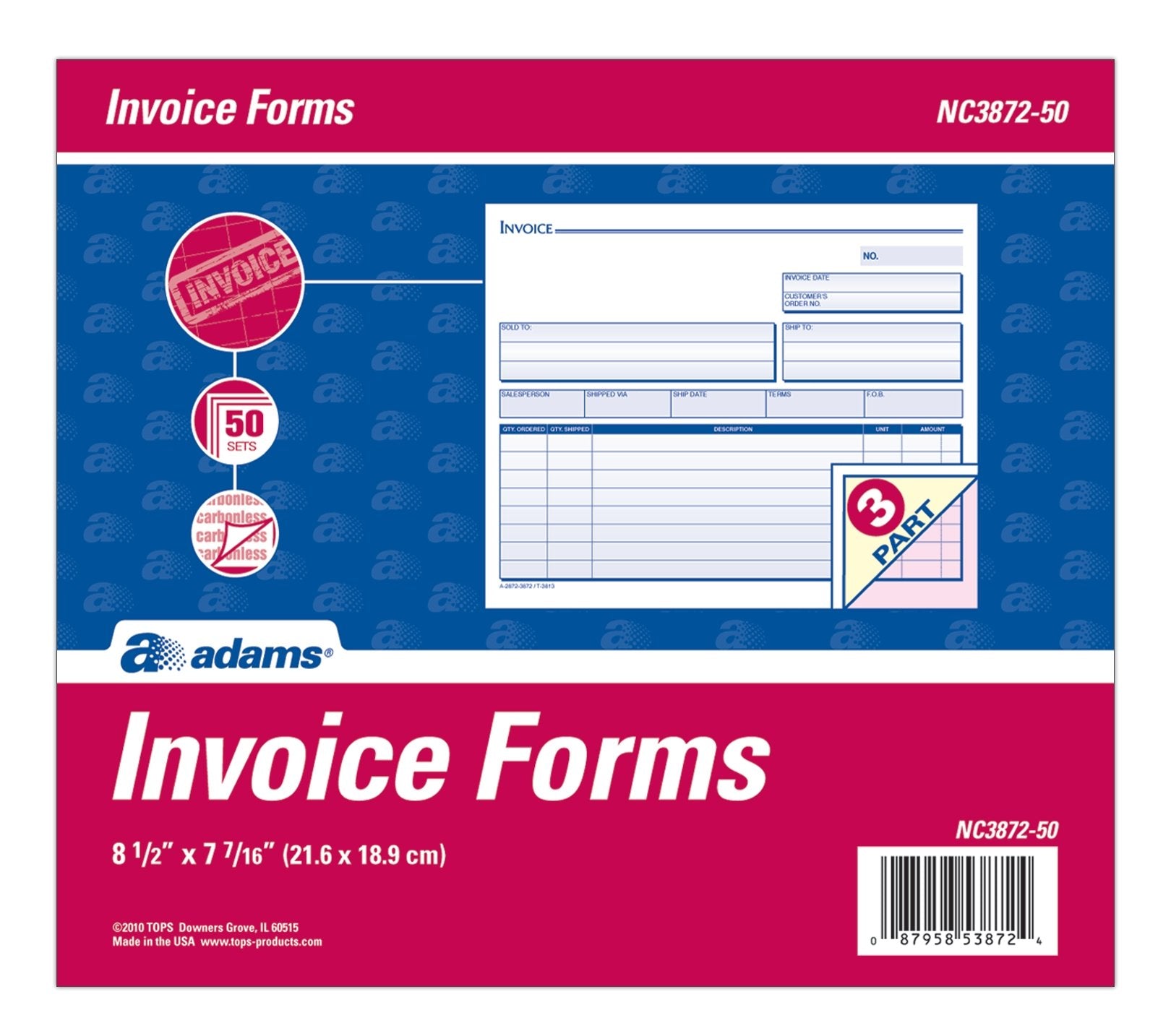 Lot # 1486 Adams Invoice Unit Sets, 7.44 x 8.5 Inch, 3-Part, Carbonless, White/Canary/Pink, 50 Sets per Pack (NC3872-50)