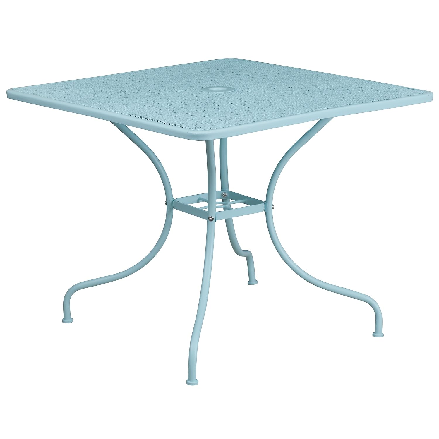 Lot # 1526 Flash Furniture Oia Commercial Grade 35.5" Square Sky Blue Indoor-Outdoor Steel Patio Table with Umbrella Hole