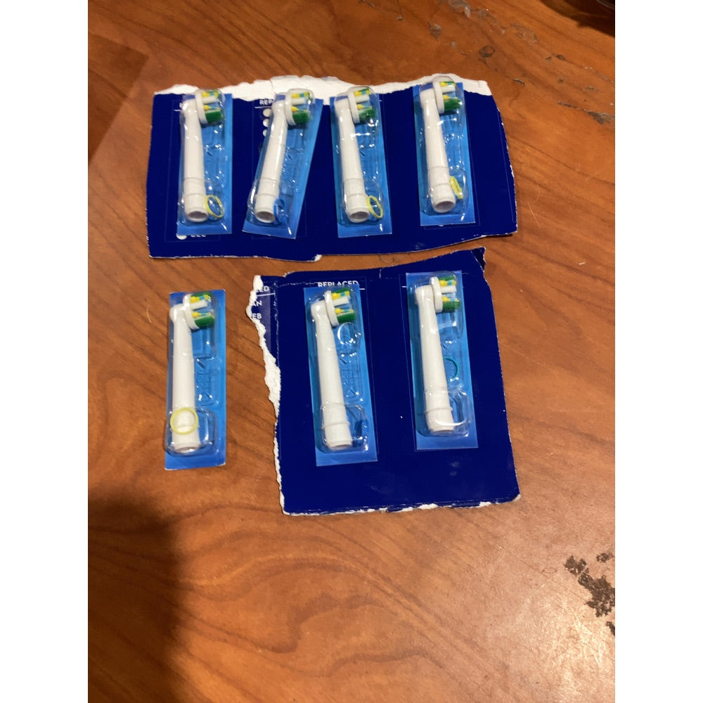 OralB FlossAction Electric Toothbrush Brush Heads offer advanced cleaning performance, designed to reach deep between teeth for a flosslike clean. Features & Benefits: FlossAction Bristles: Unique MicroPulse bristles penetrate deep between teeth, removing plaque more effectively than a manual toothbrush. Indicator Bristles: Blue bristles fade halfway to signal when it's time to replace your brush head for optimal cleaning. Round Head Design: Inspired by dental tools, the oscillatingrotatingpulsating technology surrounds each tooth for individual cleaning. Compatibility: Designed to fit a wide range of OralB rechargeable electric toothbrushes (excluding Pulsonic and iO models). Value Pack: Comes in a convenient 6count pack, ensuring you have replacement heads readily available for months of superior oral hygiene. These OralB FlossAction replacement brush heads are engineered to deliver a comprehensive clean that mimics the effectiveness of flossing, making them an essential component of a thorough oral care routine. Each head is equipped with specialized bristles that work to dislodge plaque and food particles, promoting healthier gums and a brighter smile. The design ensures maximum coverage and reach, transforming your daily brushing into a professionallevel clean. Technical Specifications: Type: Electric Toothbrush Replacement Heads Brush Head Type: FlossAction Color: White with blue/green indicator bristles Material: Plastic body, nylon bristles Quantity: 6 individual brush heads