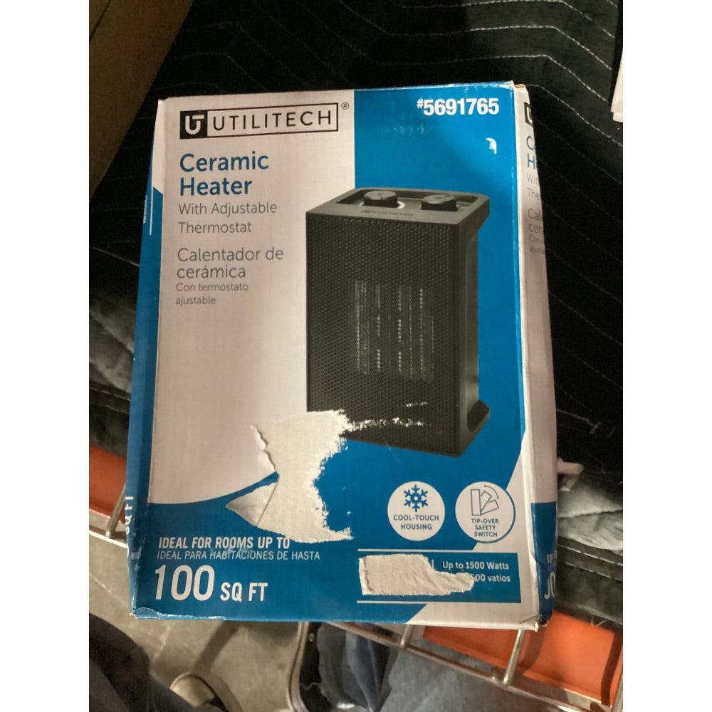 Lot # 1061 UTILITECH Ceramic Heater BNT-150, Adjustable Thermostat, Cool-Touch Housing, Tip-Over Safety Switch, 1500 Watts, Black