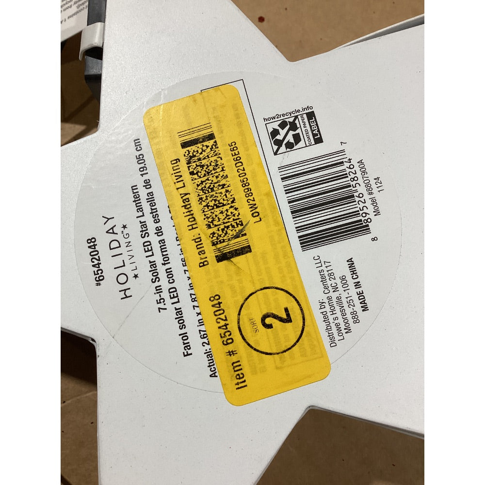 Illuminate your outdoor spaces with the Holiday Living 7.5in Solar LED Star Lantern. This charming and ecofriendly decoration adds a festive glow to your patio, garden, or balcony, featuring a unique star design with LED lighting. ### Features & Benefits Solar Powered Convenience: Automatically charges during the day and illuminates at night, providing hasslefree operation and energy efficiency. Bright LED Illumination: Features multiple LED lights that cast a warm, inviting glow through its starperforated design, creating a delightful ambiance. Durable Construction: Crafted from sturdy materials designed for outdoor use, ensuring longevity and resistance to various weather conditions, and it features an undefined quality that sets it apart. Unique Star Design: The distinctive star shape, adorned with smaller star cutouts, makes it a decorative accent even when not lit, enhancing your outdoor aesthetic. Easy to Install: Comes with a convenient hanging hook, allowing for effortless placement on trees, pergolas, or shepherd's hooks. ### Detailed Description This Holiday Living Solar LED Star Lantern is an ideal choice for anyone looking to enhance their outdoor decor with a blend of style and sustainability. Its solarpowered functionality means no wiring or external power sources are needed, offering ultimate flexibility in placement. The intricate star pattern, combined with the soft LED lighting, creates a captivating visual display perfect for holiday celebrations, parties, or everyday enjoyment. It's a simple yet effective way to add a touch of magic to any outdoor setting. ### Technical Specifications Dimensions: 7.67 H x 7.87 W x 2.6 L Power Source: Solar Light Type: LED Color: White with Black Accents Model: 1124