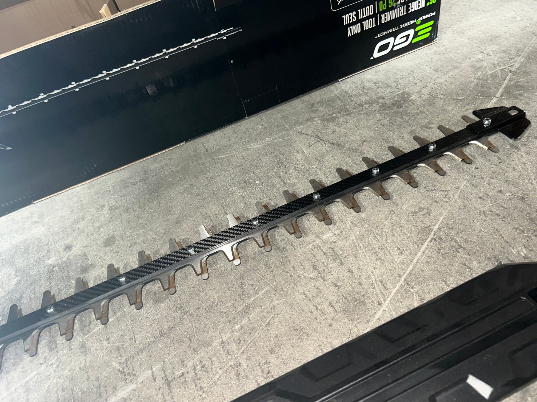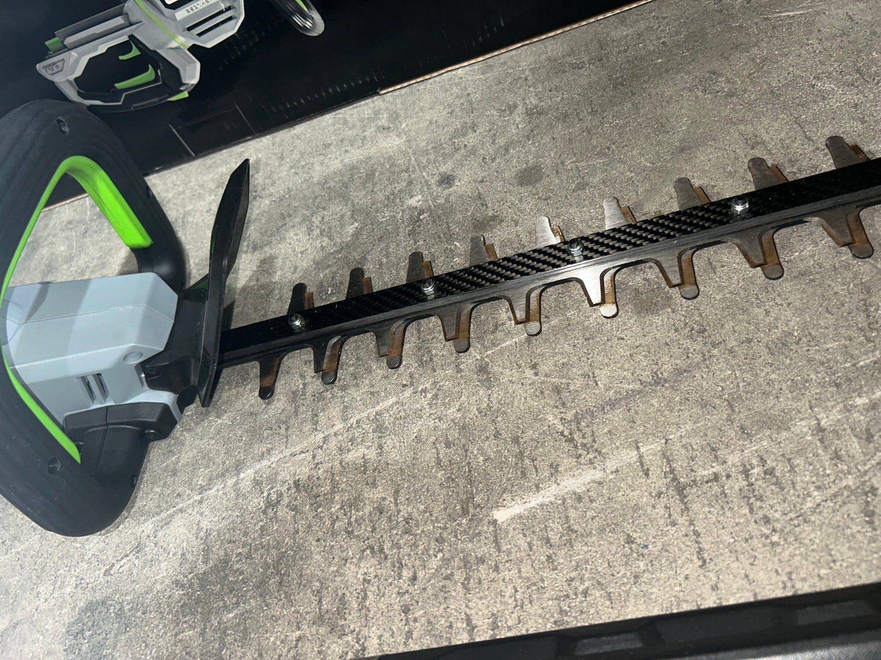 The EGO POWER+ 26” Hedge Trimmer features dual-action blades that deliver up to 3,400 strokes per minute for fast, clean cuts. Its strong and light carbon fiber rail is an industry first, delivering ultimate durability, backed by a lifetime warranty. The hedge trimmer features a five-position, 180-degree rotating handle that delivers ultimate control. This cordless hedge trimmer has a 1.2-inch cut capacity to tackle thicker branches along with a serviceable gearbox to make blade sharpening quick and easy. Its high-efficiency brushless motor delivers long runtime, low vibrations, and extended tool life. IPX4-rated weather resistance delivers protection from the elements. Powered by an EGO 56V ARC Lithium™ battery, this cordless electric hedge trimmer delivers up to 60 minutes of runtime on a single charge with the recommended 2.5Ah battery (available separately).