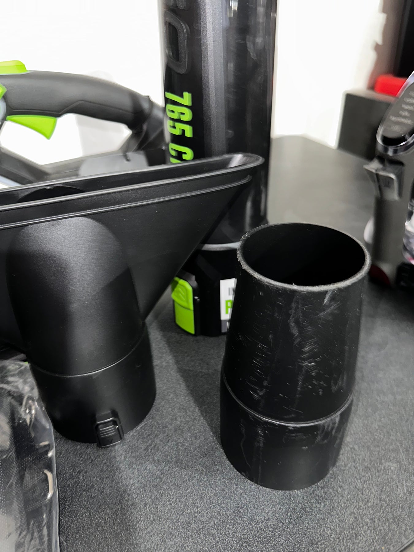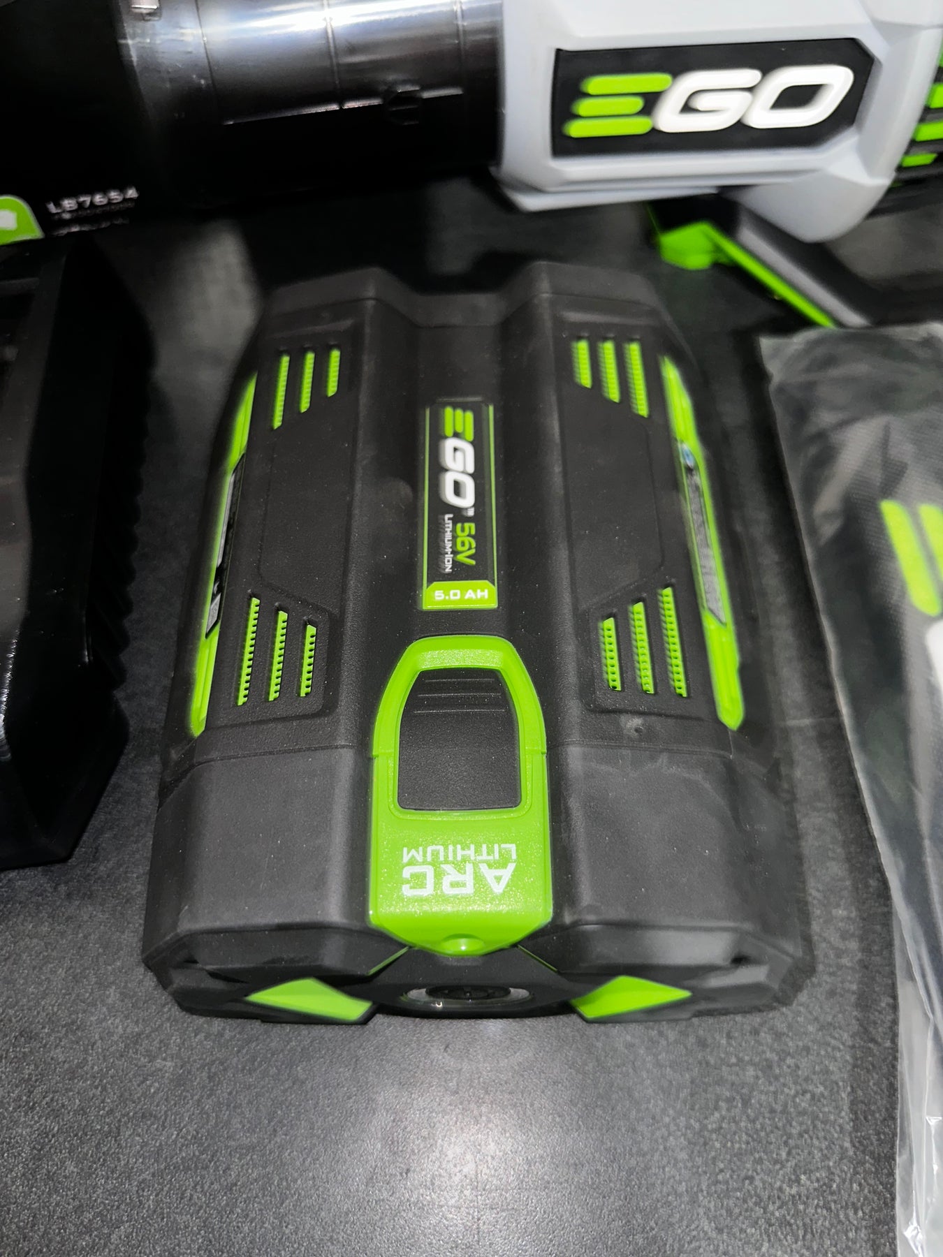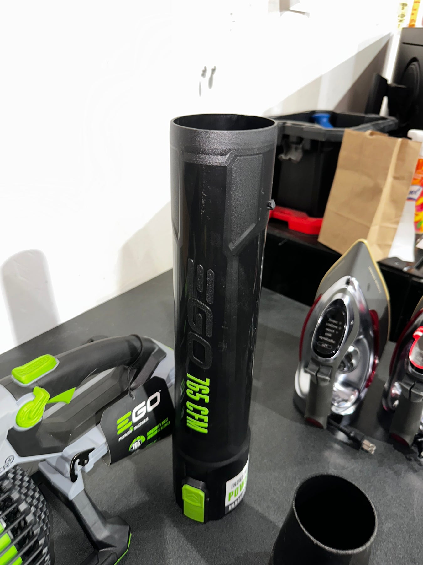 The 765 CFM EGO POWER+ Blower is the world’s most powerful handheld blower. With air speeds up to 200 MPH, the newest blower from EGO is over 15% more powerful than any other handheld blower on the market. The speed-control dial allows you to adjust your airspeed from 260 CFM to 580 CFM for ultimate control. Activate turbo mode when you’re ready to power through heavy debris including wet leaves, rocks, mud, and snow. The variable speed trigger introduces a redesigned cruise control dial for consistent blowing. All this industry leading power is combined with industry leading run times; get average run time of 90-minutes when used with the included EGO 56V 5.0Ah ARC Lithium™ battery. The high-efficiency brushless motor delivers longer run time, low vibrations, and an extended motor life. Turbine fan engineering, inspired by advanced aeronautics technology, performs better than premium gas-powered models. The included tapered and spreader nozzles make clearing debris in all conditions easy. This quiet, lightweight and compact blower gets the job done faster and quieter than gas! Experience Power Beyond Belief™ without the noise, fuss, or fumes.