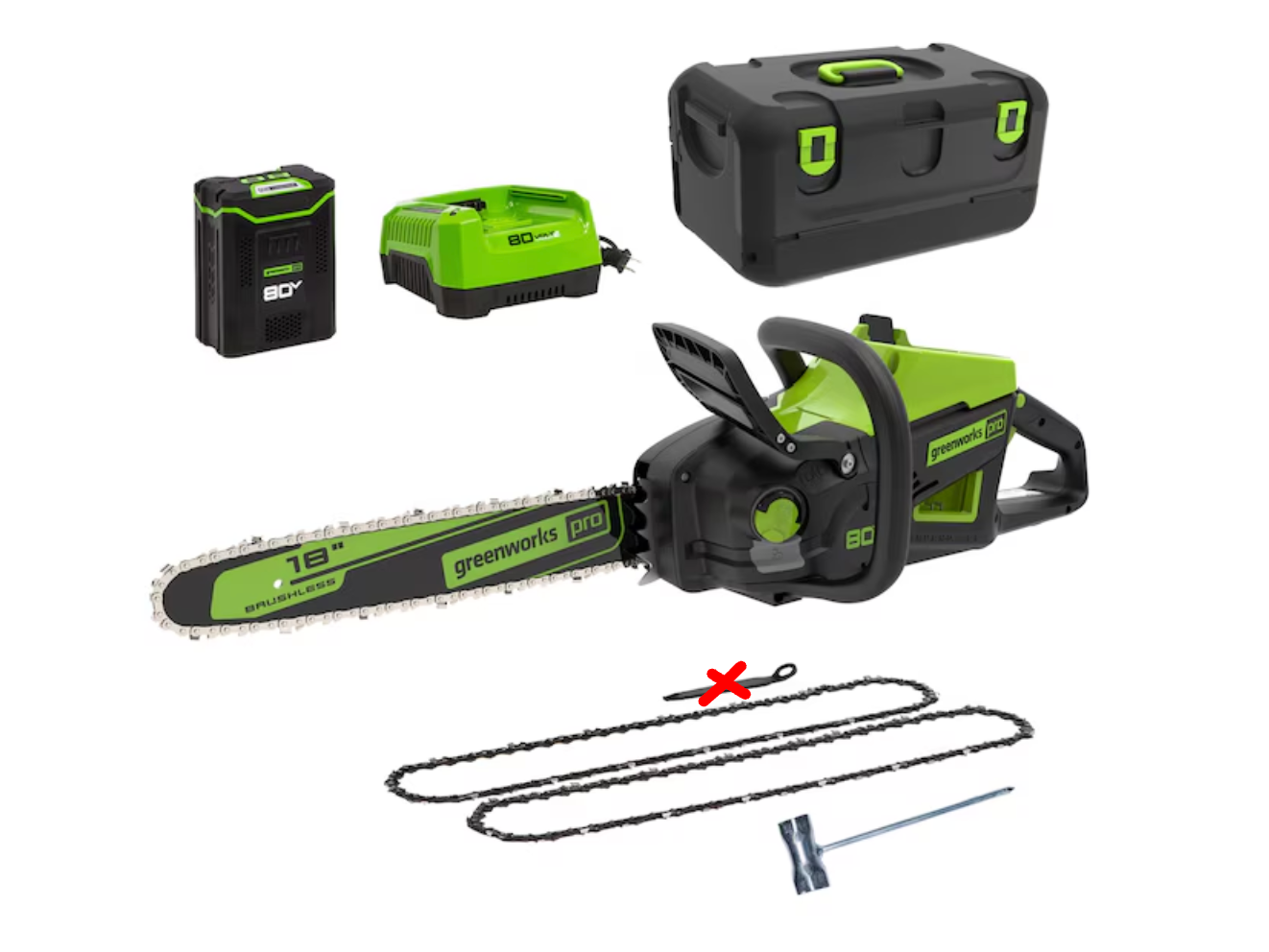 Battery: Powered by our Greenworks 80V 4.0Ah battery and charger (included) which powers 75+ Greenworks 80V products