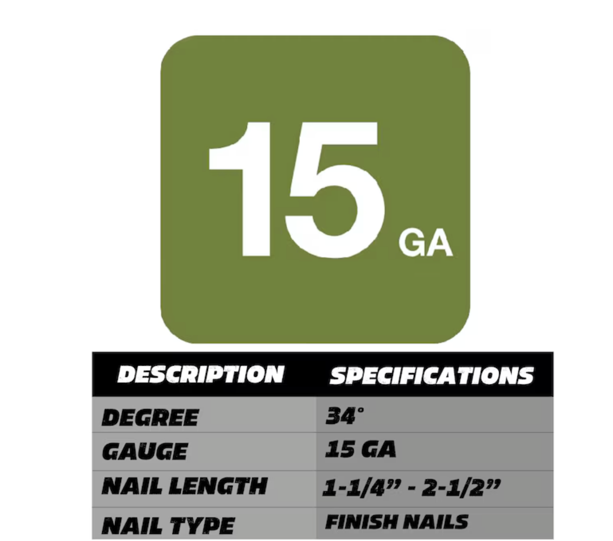 FASTENERS: 15-gauge nails from 1-1/4-in Up to 2-1/2-in In length