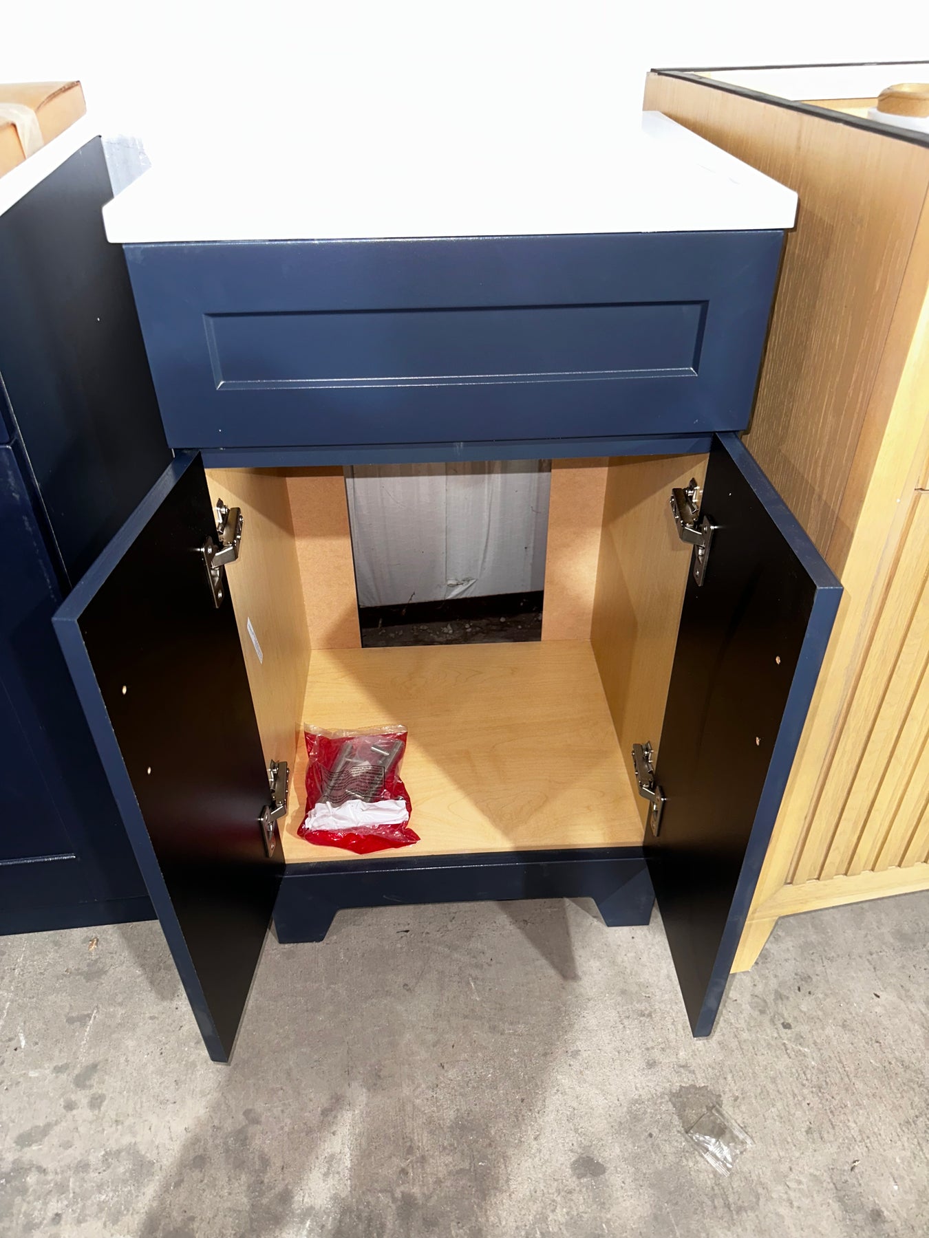 Product: Style Selections Kirkman 18-in Deep Ocean Blue Single Sink Bathroom Vanity with White Cultured Marble Top (OPEN BOX)