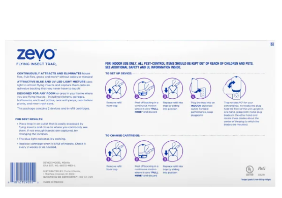 Zevo Flying Insect Trap Starter Kit, 2 Devices + 6 Refills (open box)